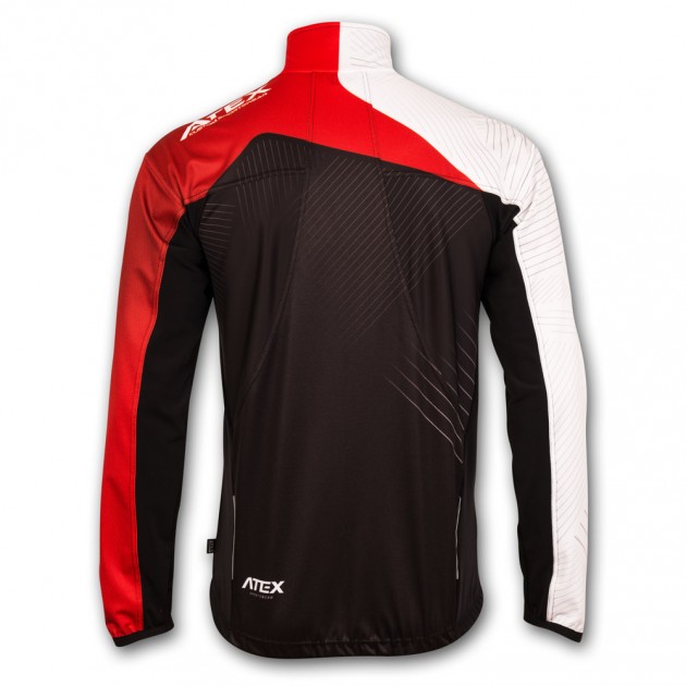 The front panel has full length zip with covers at both ends, two main zip pockets and one chest zip pocket. All zips are equipped with lock down system. Stand-up collar and long atypically set-in sleeves finished with stretch hem make this jacket’s unique signature. Bottom hem is without any elastic and therefore does not pull down on sides while moving. Reflective details can be arranged at the back.