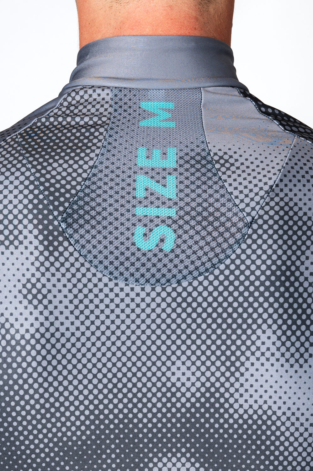 It has close-fitting and is made from stretchy fabric Espan grit that offers light compression. The other materials are applied onto details. Children’s version is made from warm Roubaix material to provide necessary thermo-insulation. Roubaix can be also found on the inner stand-up collar panel in order to provide more comfort. Mesh material with a netlike structure increases breathability and therefore used on the back of armpit panels and in between the shoulder blades (not on children’s version).