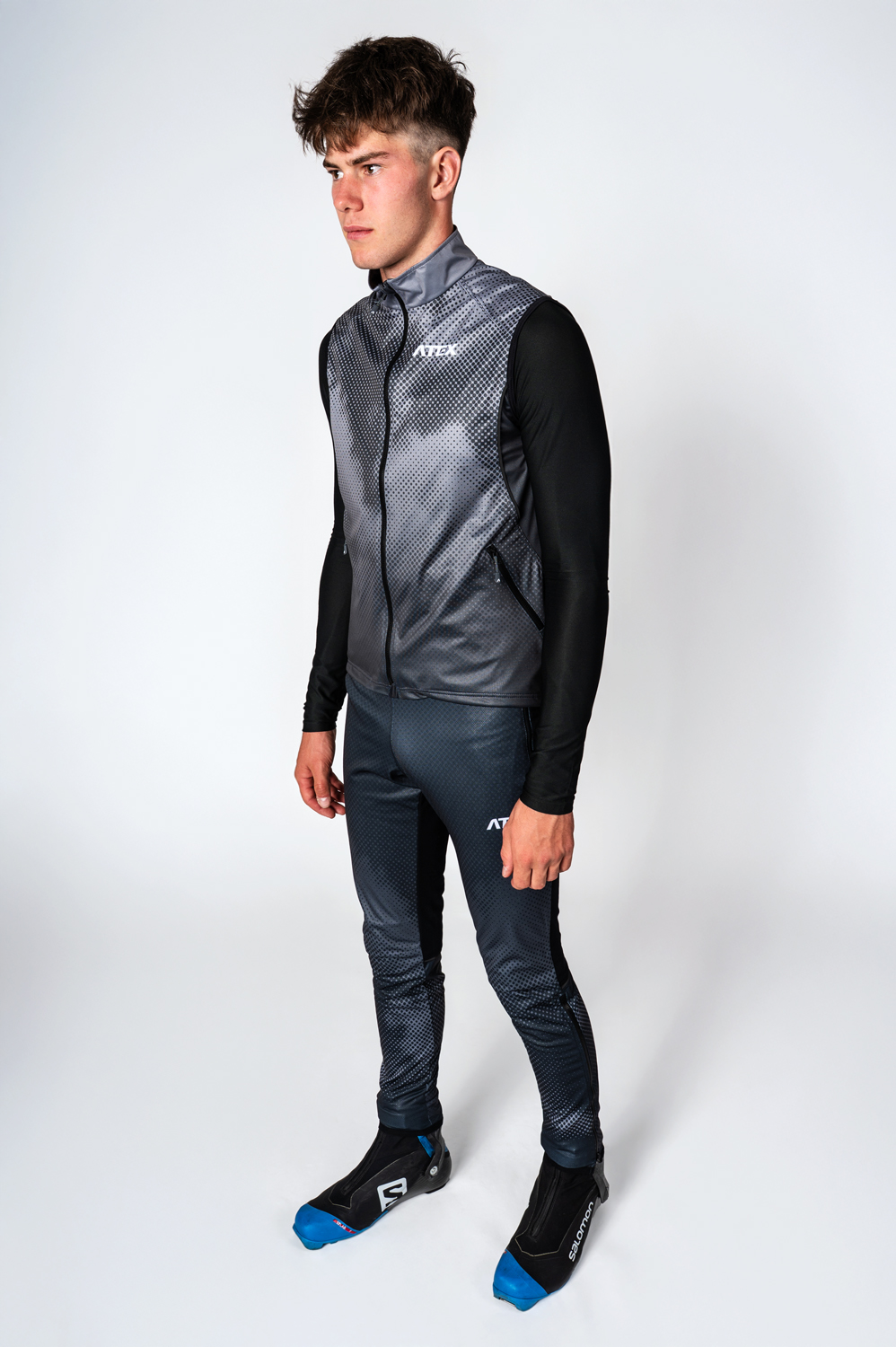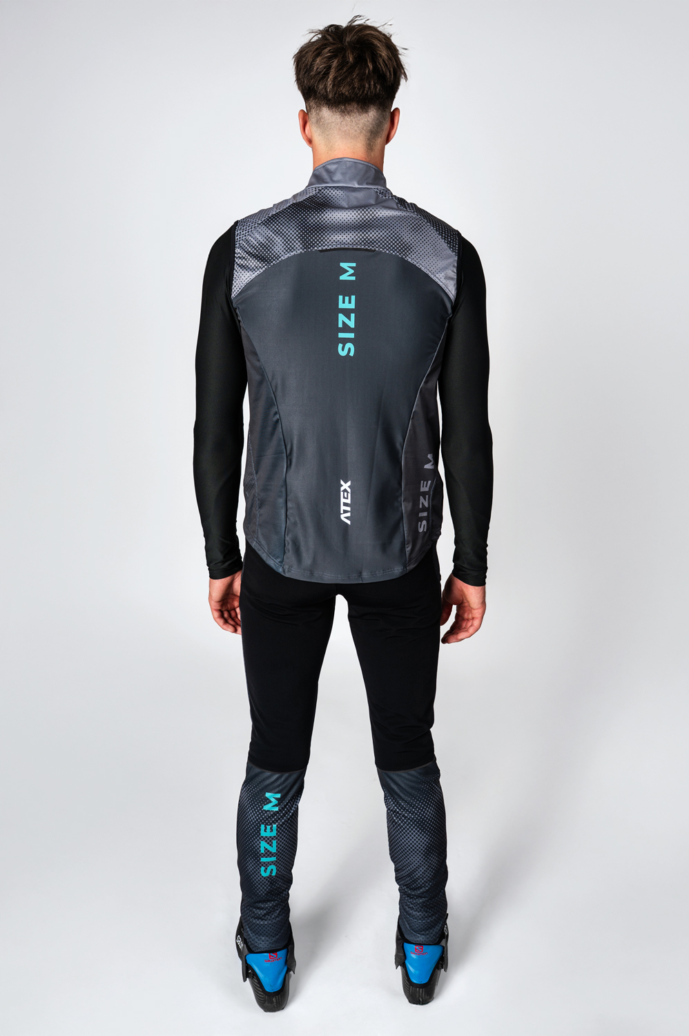 The running and racing gilet in a semi-fitting design is ideal especially as a men’s or unisex version. It is made in combination of two materials: the main part from lightweight three-layer membrane Zerowind material that is resistant to wind and moisture. Middle back part is made from stretch and soft Roubaix material offering better breathability and full range of motion. Gilet is anatomically shaped with a full length zip with covers at both ends and two zip pockets at the front. Armholes are hemmed with elastic and bottom hem is without elastic. Front and back panel is equipped with reflective details. Chest zip pocket or back pockets can be added at your request together with your own design on the grey areas as seen n the picture.