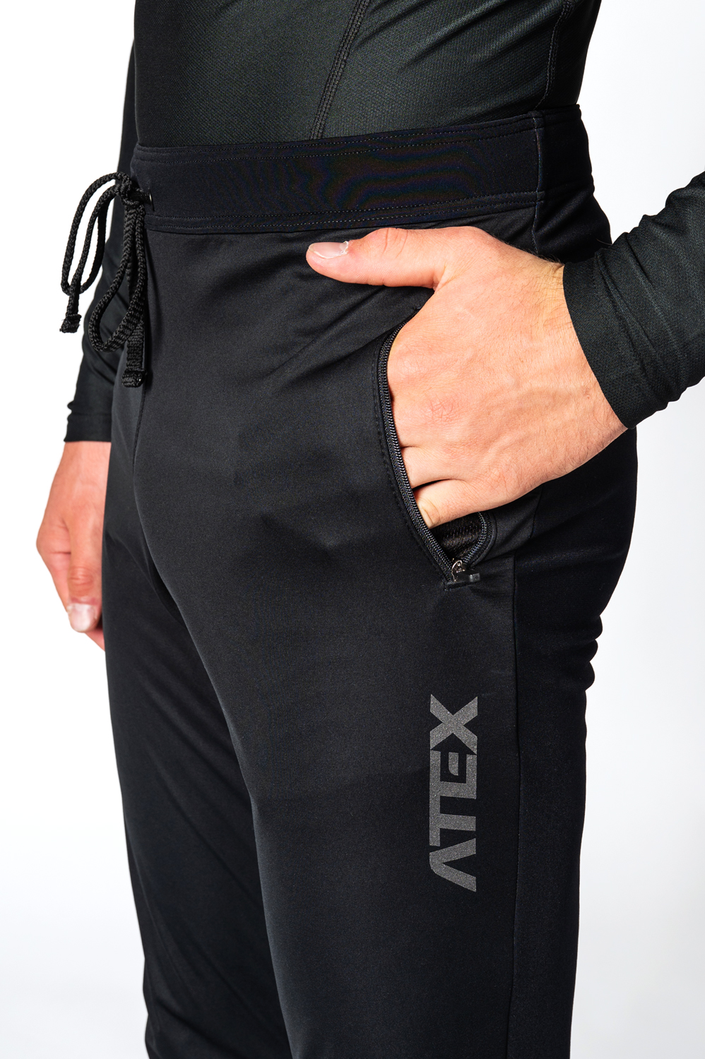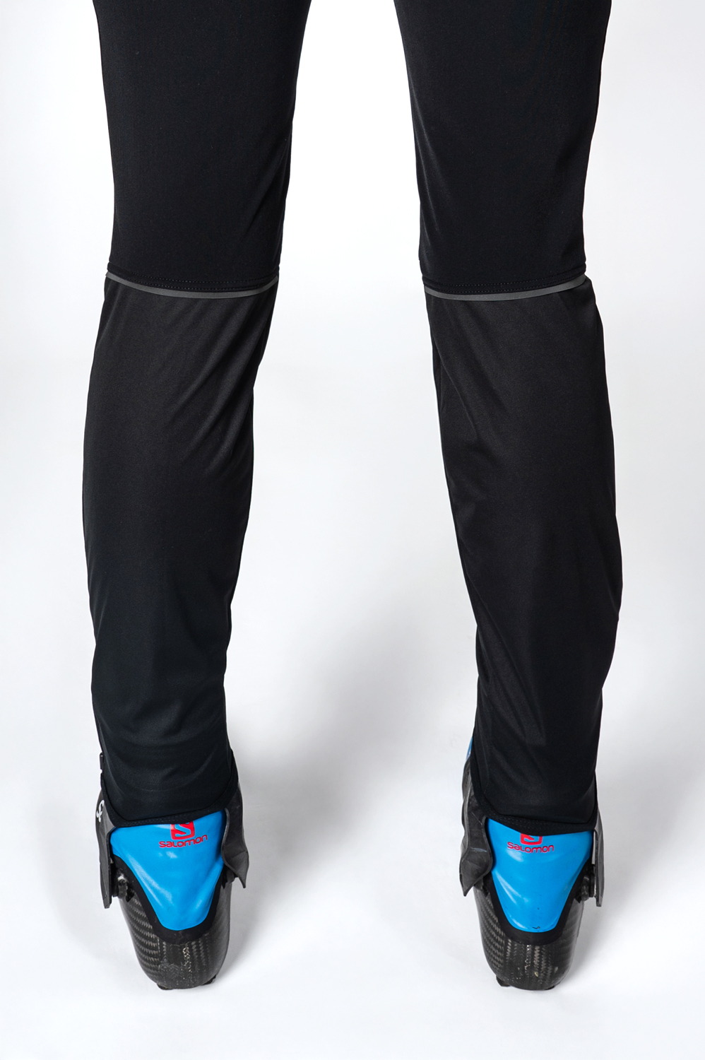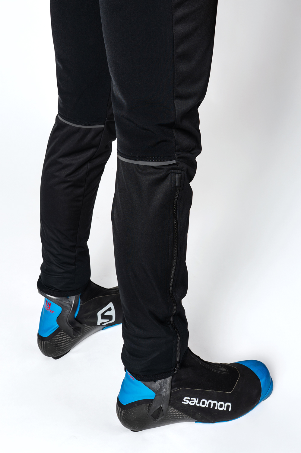 The long running changing trousers are in a semi-fitting design. Dual-fabric construction characterises these trousers: the front legs with specially shaped knee areas and back calf panels are made from warm three-layer membrane Zerowind material or Softshell material that is resistant to wind and moisture. Belt and upper part of back legs are made from very stretch and soft Roubaix material for better breathability and full range of motion. Trousers are anatomically shaped and this can be enhanced by a waistband with a drawstring. There are also two zip pockets in the front with lock down system. Long underlaid and water-resistant zips along almost all length of the legs make them versatile and ready to be used before and after sport activity and makes them easier to put on while wearing boots. Lower turn-ups are finished with edging elastic. Distinctive reflective details are at the back.