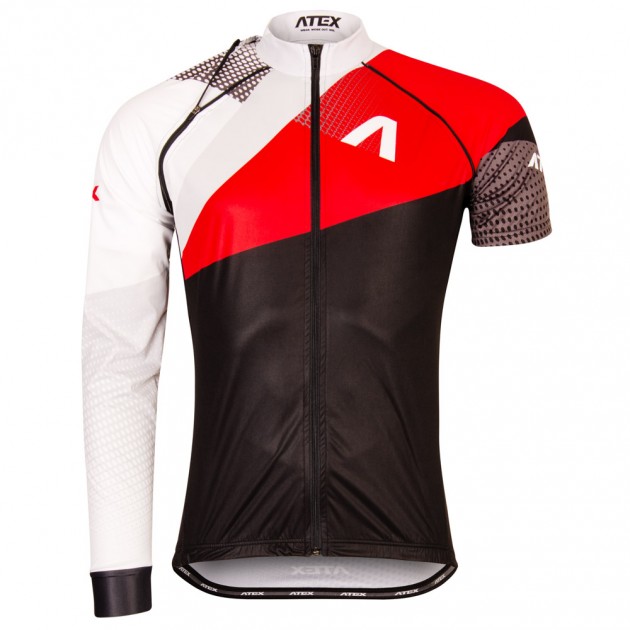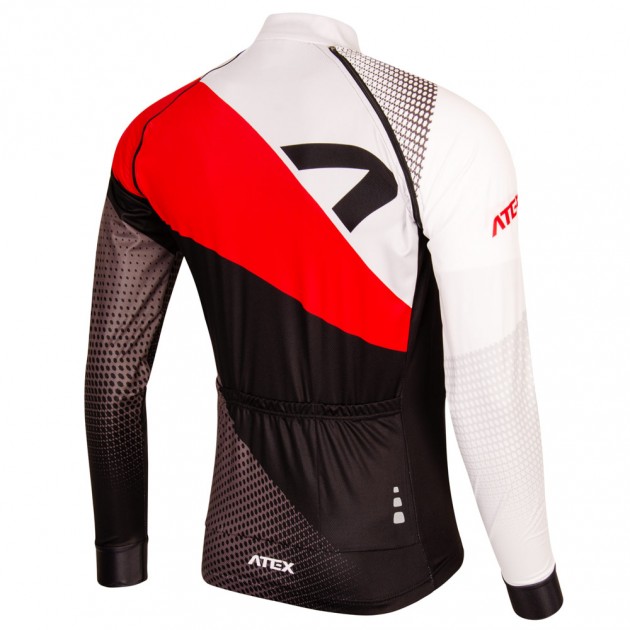 the jersey is in semi-fitting design with a front full length zip, long raglan sleeves with cuffs, short raglan sleeves with elastic hems, jersey hems have silicone gripper elastic at the bottom, triple rear pocket with a possibility to add the fourth zip pocket at your request. reflective details.