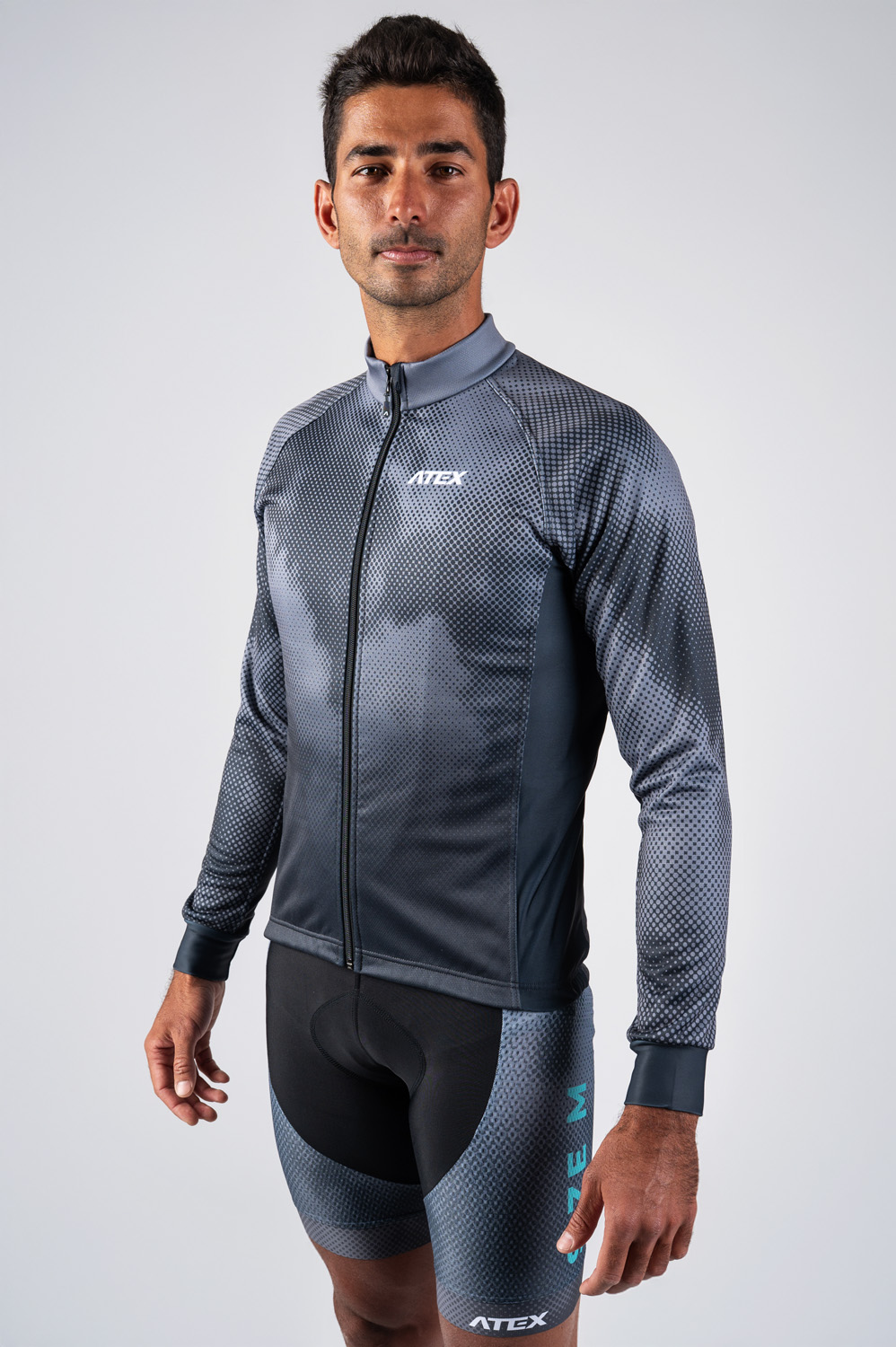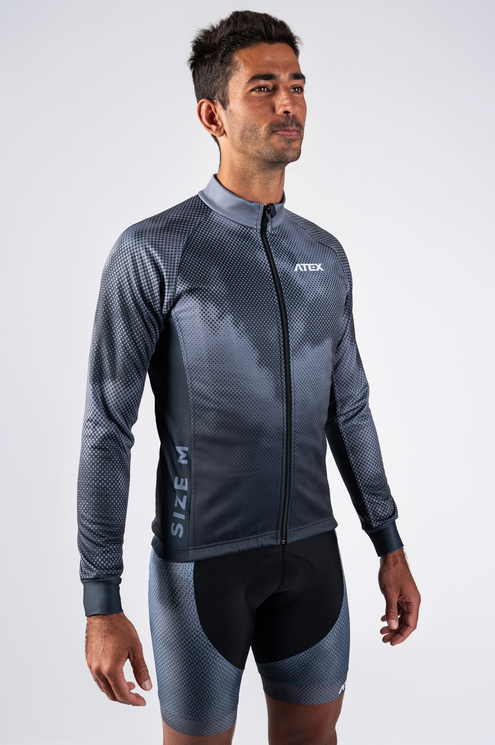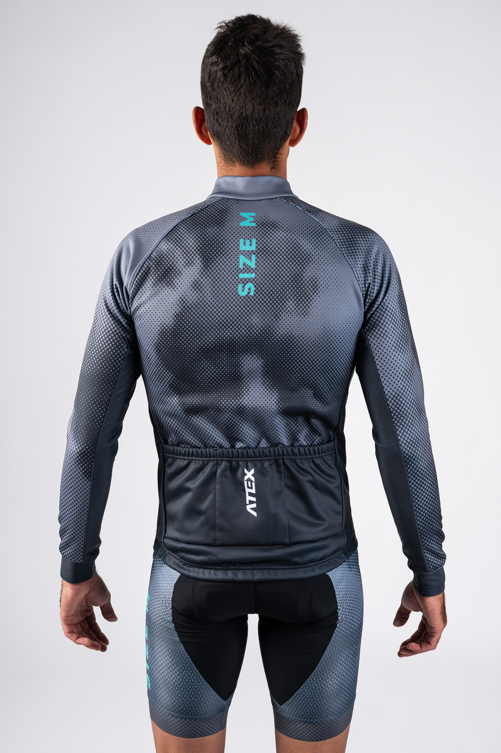 The cycling jacket is made in combination of two materials. The basic one is a three-layer membrane Zerowind material resistant to wind and moisture. Side panels and inner sleeve panels are made from very stretch Roubaix material for better flexibility and breathability. Jacket has semi-fitting design, full-length underlaid zip, triple rear pocket with reflective details and raglan sleeves with stretch cuffs and silicon gripper in the bottom hem. At request we can add fourth rear zip pocket (as seen in the picture) or only one big zip pocket. The basic model comes in warm Zerowind material but can be also made in lightweight Zerowind Light material.