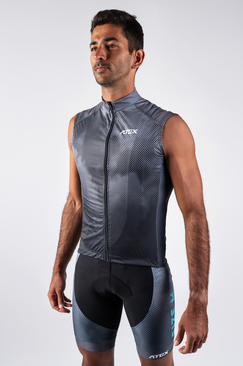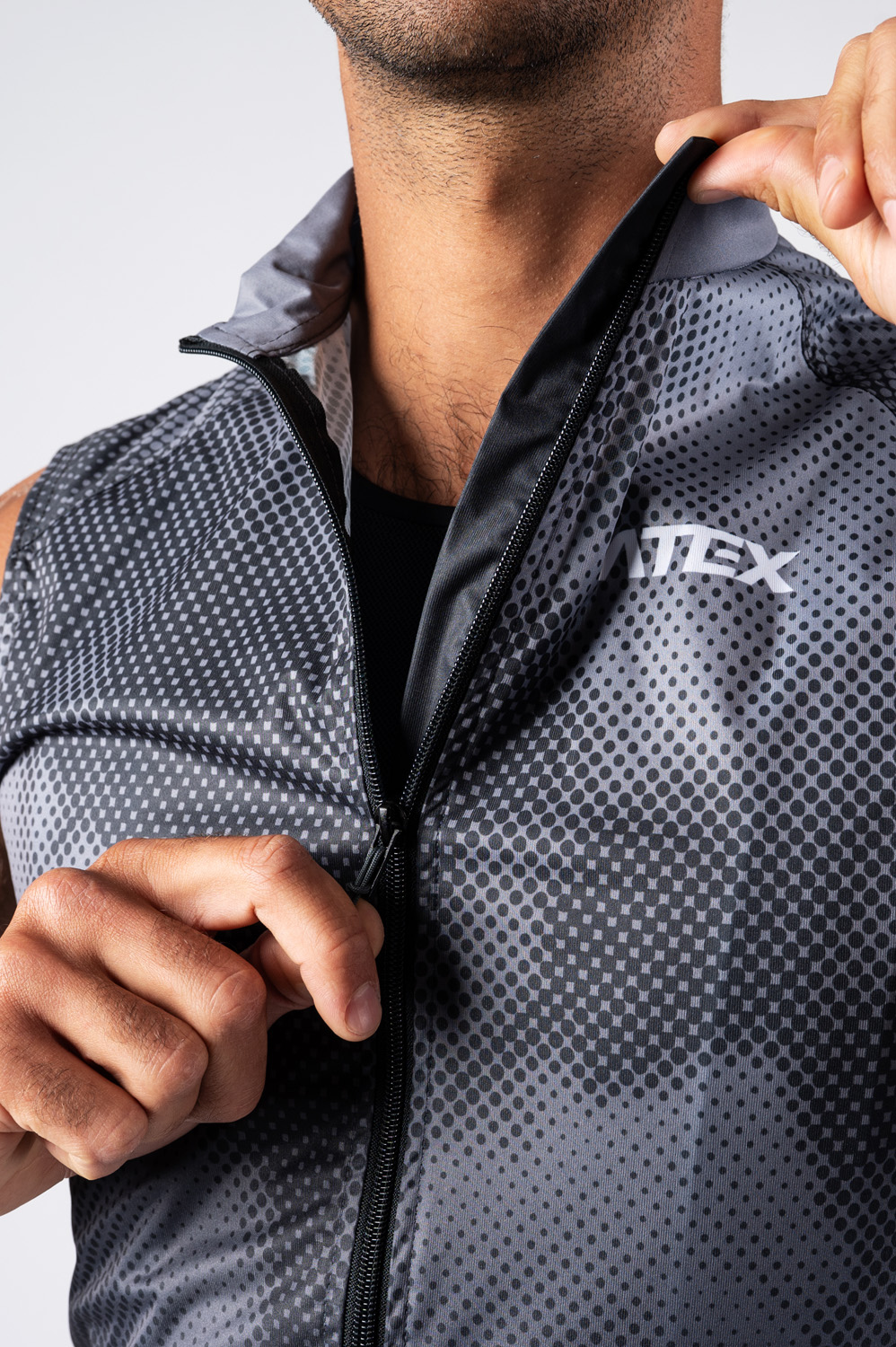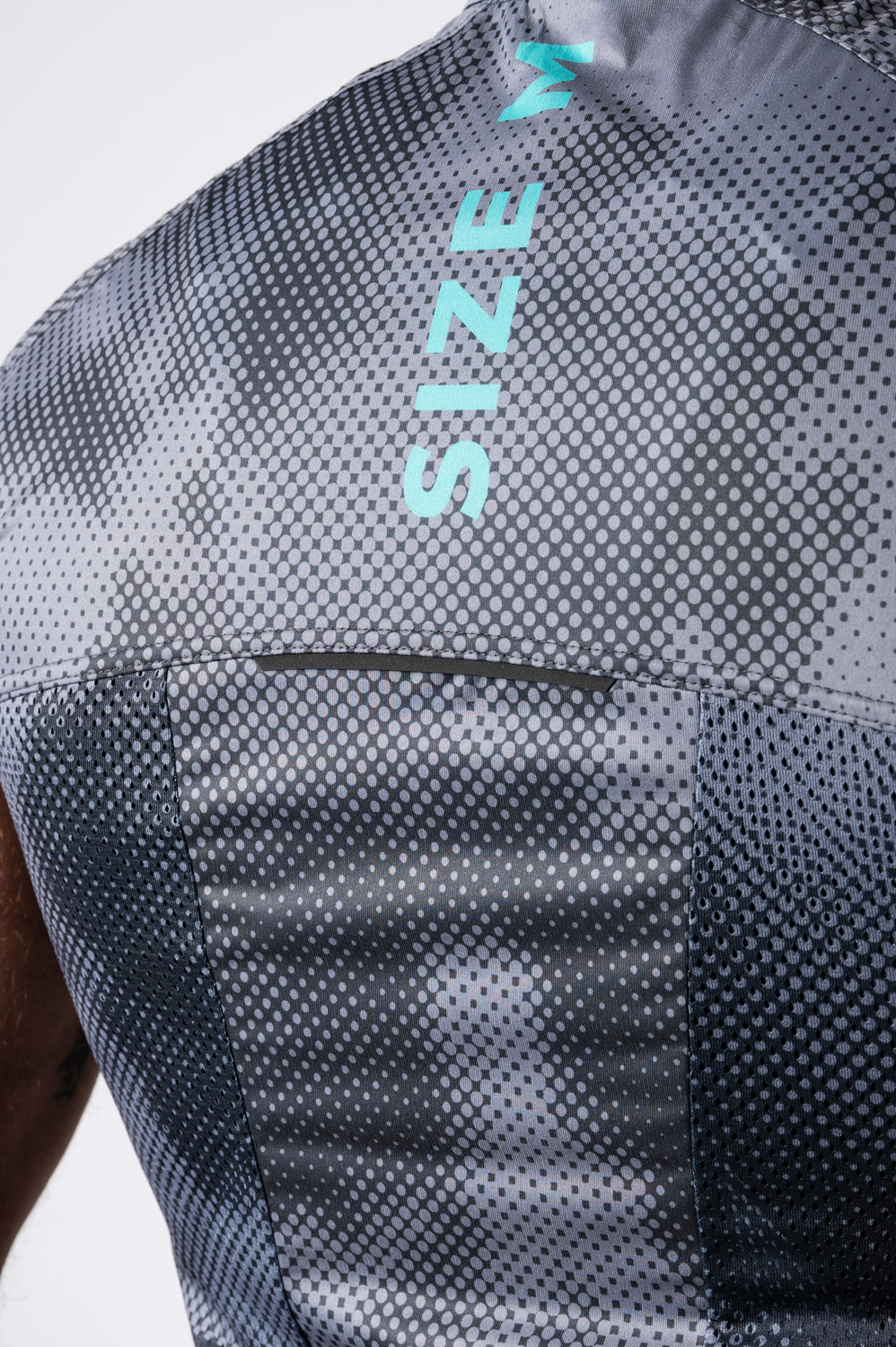 The lightweight cycling jacket is made from three materials. The basic one is a light membrane Windproof Soft material resistant to wind and moisture. The side panels are made from Espan material for more flexibility and part of the back panel from stretch and breathable mesh material Mesh Bike. Gilet is in a semi-fitting design and other advantages are full-length underlaid zip, zip pocket on the central back panel made of wind resistant material, reflective details and silicone gripper on bottom hems.