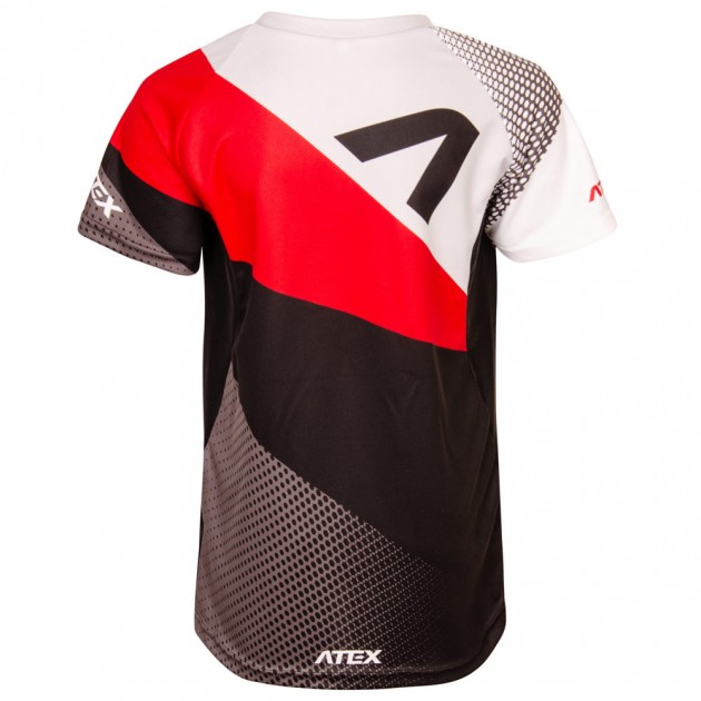semi-fitting kids mtb jersey is made from breathable fabric coolspark, the sides are from material asteria for increased elasticity. v-neck, short raglan sleeves and elastic sides that minimize the number of seams in the armpits. the bottom hem and sleeve cuffs are folded without rubber. the jersey comes in a long sleeve version too. reflective details at your request.