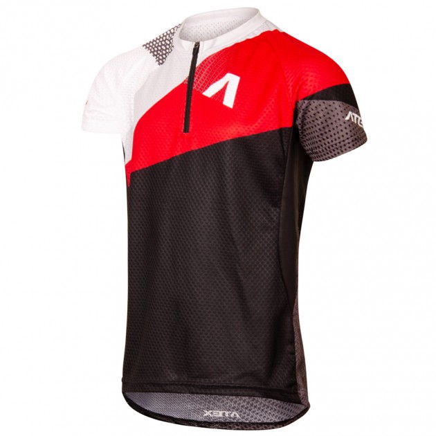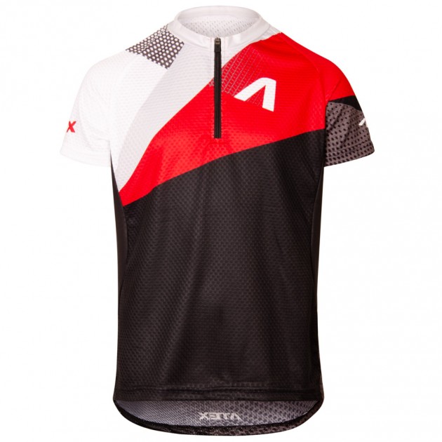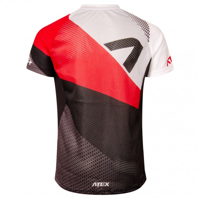 The Jersey is made from breathable and quick-drying materials, which have increased abrasion resistance. Front part and sleeves are made from Polyester, back part is from mesh fabric Denoder Mesh and side parts of the Jersey are from very elastic material called Asteria, which adapts to the shape of your body thanks to its flexibility.