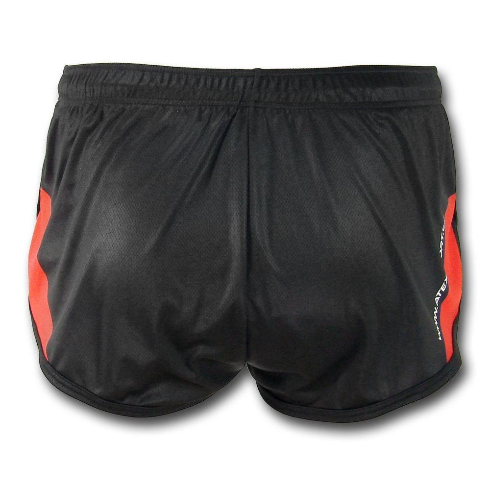 The athletic or running shorts of relaxed fit have sewn-in under pants made from non-stretch mesh material. Elastic waistband with drawstring makes sure the shorts stay in place while running. Rear zip pocket and reflective strips can be added at your request.