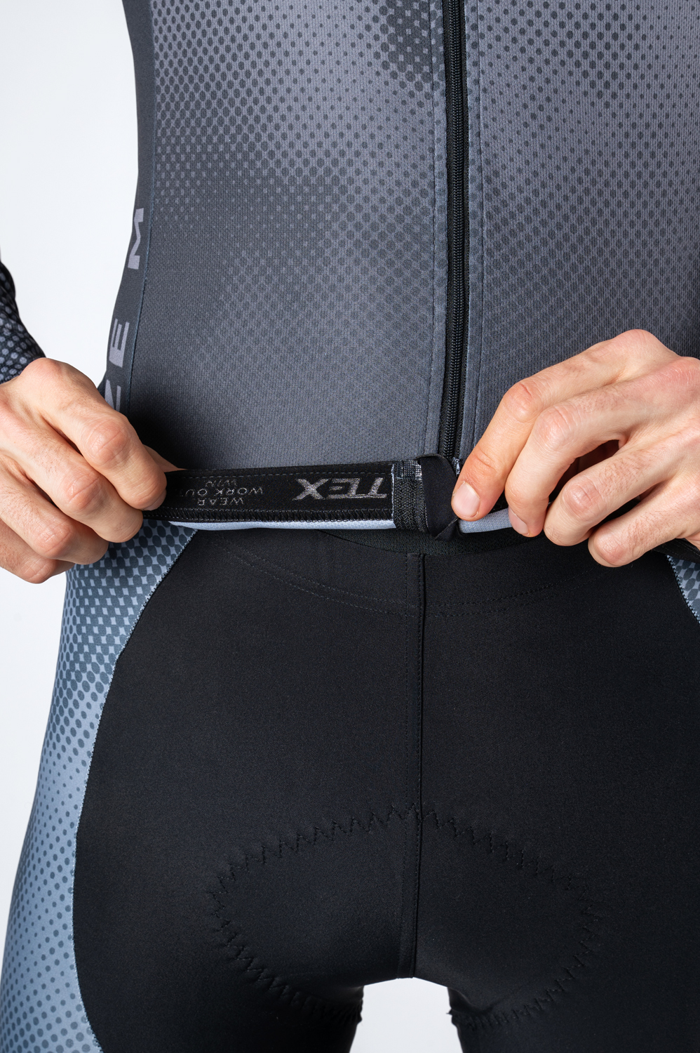Auf Wunsch kann das Trikot mit einer vierten Reißverschlusstasche auf dem Rücken ergänzt oder das klassische Gummiband in der Taille gegen eine rutschfeste Silikonvariante ausgetauscht werden, um einen besseren Halt während der Fahrt zu gewährleisten.