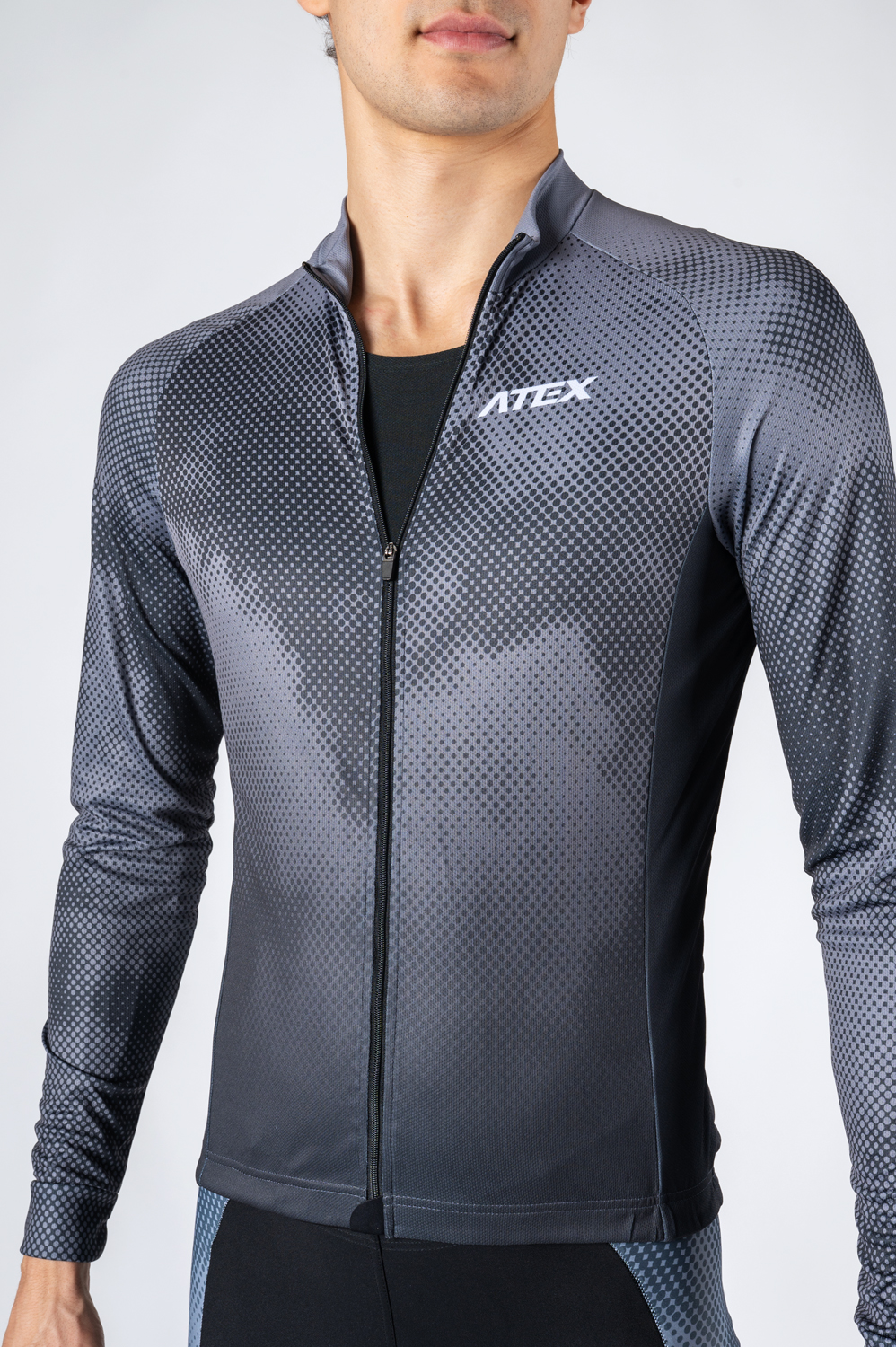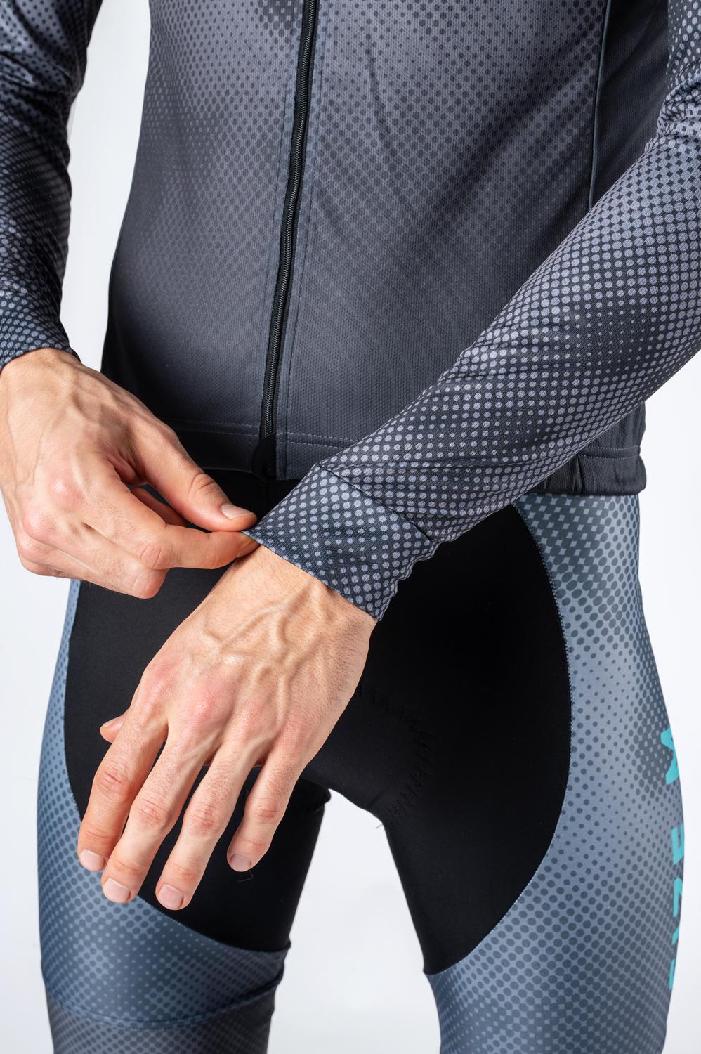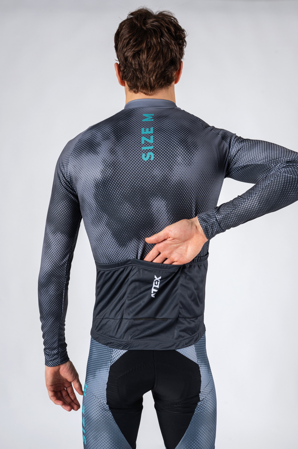 Das langärmelige Radtrikot verfügt über einen durchgehenden Reißverschluss; auf der Rückseite befinden sich eine dreiteilige Tasche zur Aufbewahrung von wichtigen Utensilien sowie reflektierende Elemente, die die Sichtbarkeit bei schlechten Lichtverhältnissen verbessern. Die Ärmel sind mit elastischen Bündchen versehen, die für einen bequemen Sitz sorgen, und im Bund ist ein Gummizug eingenäht, der für einen stabilen Halt des Trikots sorgt.