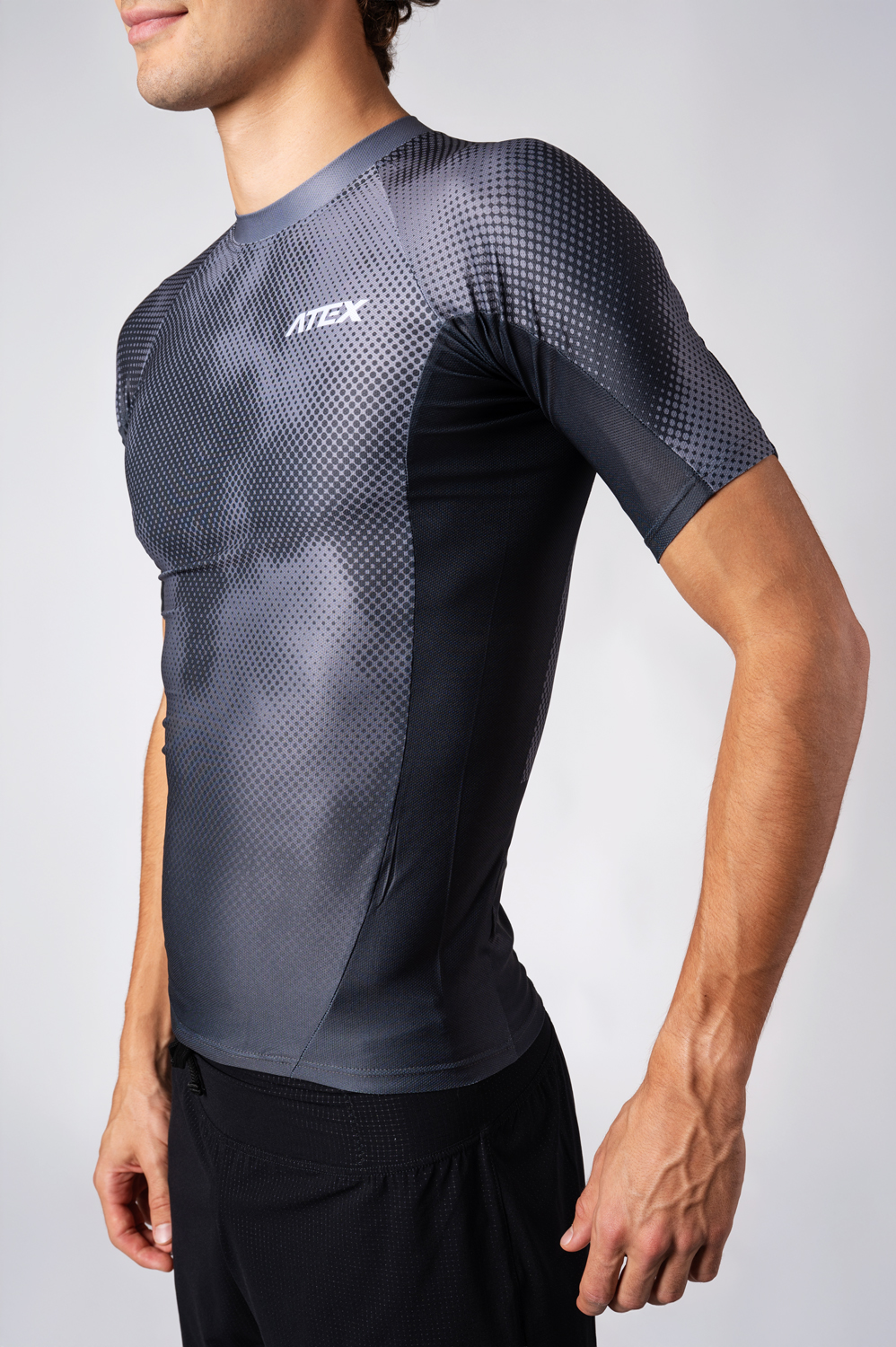 The men’s close-fitting athletic jersey is made from very stretch, soft and breathable Sali material.