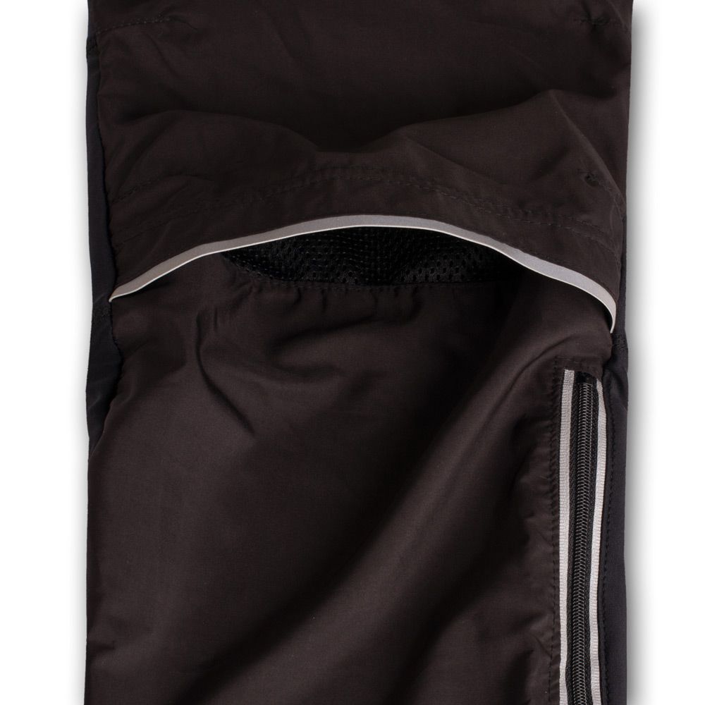The lightweight long trousers in specially body-shaped design are meeting all orienteering runners' needs. Front panel is made from Luvia material with water-repulsive coating, back part of legs is made from stretch Espan material allowing full range of movement for the athlete. Front parts from the waist up to knee areas are underlined with Mesh material and there is a ventilation hole under knee area that leaves a bit of play for knee movement. These trousers also come with a waistband and drawstring and two zip pockets. Reflective zips on trouser legs and distinctive reflective details on the front and back panels of the legs. All zips are equipped/provided with lock down system.