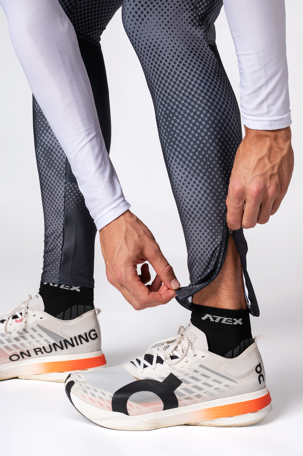 These long stretch trousers are ideal for running and athletics. Its basic version is made with elastic waistband with drawstring, rear zip pocket and below knee areas from Mesh material for better ventilation. You can have your legs finished with a zip or/and reflective details.