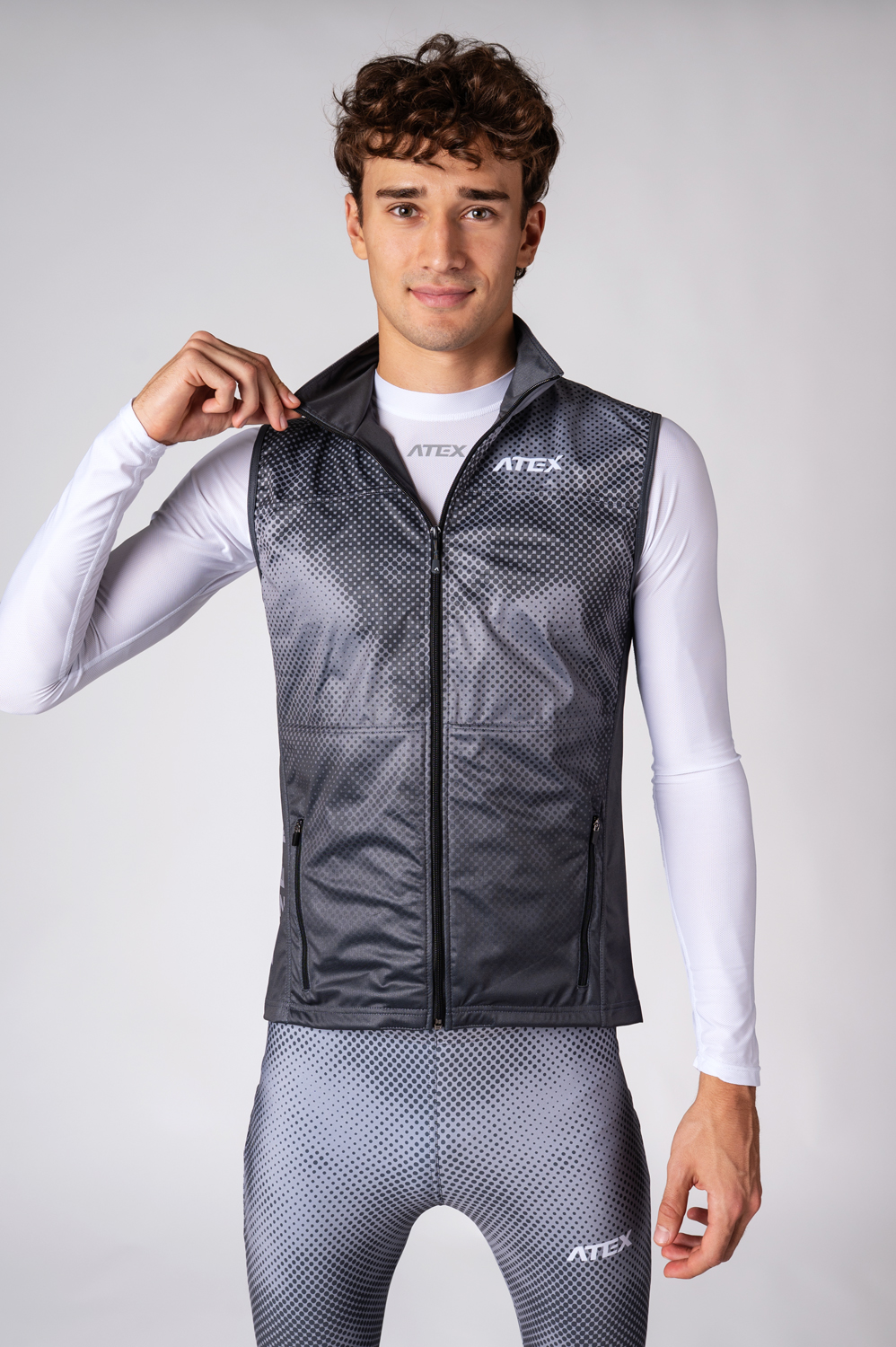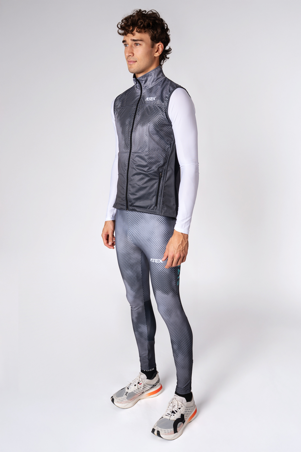 Full length zip with covers at the front, two main zip pockets and one chest zip pocket come as standard. There are also zip pockets equipped with lock down system, stand-up collar and armholes with stretch hems. Bottom of the gilet is without elastic and therefore doesn’t pull down when moving. Reflective trims are placed at the back.