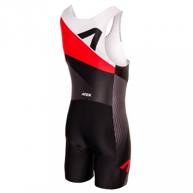 The suit is sleeveless and with round neckline. Cut out armholes are hemmed with inner elastic. Short legs are finished without elastic which allows free riding on tights while rowing without any unwanted pulling.
