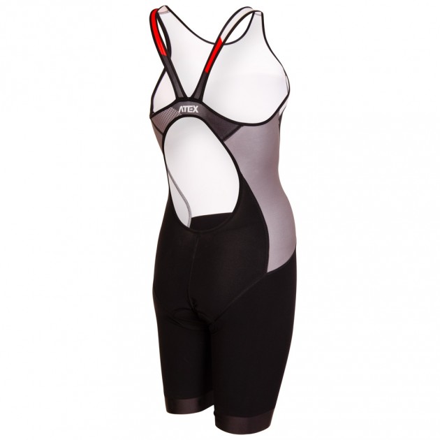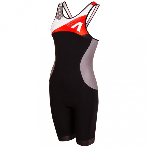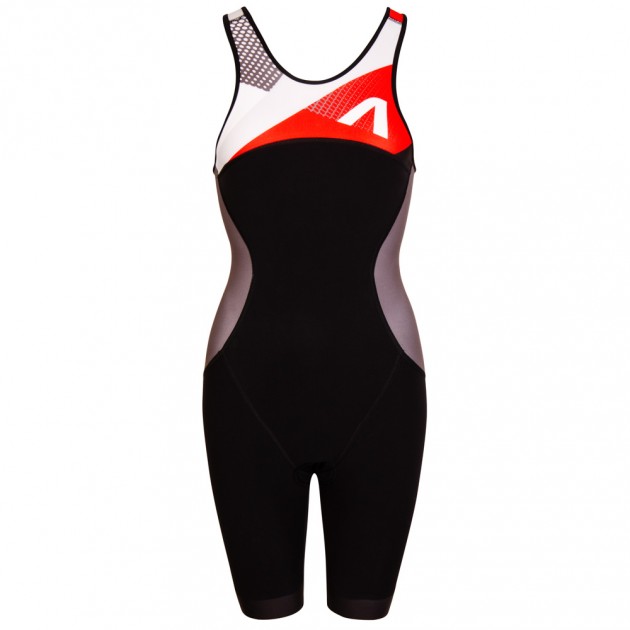 The women’s triathlon suit is made from revolutionary quick-drying Tritech material and it was developed in cooperation with top Czech triathlete. We used technology of bonded seams that enhances better functional properties of used materials. In terms of shape, the suit includes a lot of features typical for swimsuit. Shoulder straps, its fastening, low round neckline on the back and specific placing of trouser legs create optimal functionality and firmness while changing individual sport disciplines. The suit has short legs with bonded wide elastic gripper. Upper and bottom part of front panel is doubled in order to avoid transparency and better reinforcement of the fabric. Seams are flat. Armholes, shoulder straps and back neck line are hemmed with elastic material resistant to any stretching in the water. Suit comes with Triathlon pad as standard.